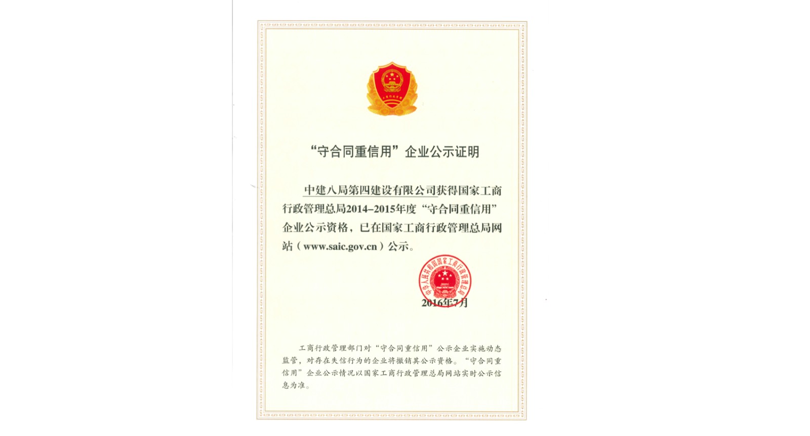 全国守合同重信用企业